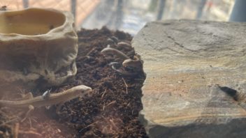 そしてちょいちょいニホンカナヘビの幼体を発見して捕まえました。ニホントカゲの幼体もたまーにいるんですが、逃げられます。やはり捕獲難易度が高いのか・・・?( ノд`)