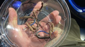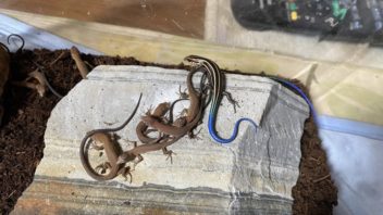 そしてマクドナルドのドライブスルーでご飯を調達してから11時前に帰宅して、捕まえて来たニホントカゲの幼体とニホンカナヘビの幼体をプラケースに入れました。ちょっと数が多いかな・・・。そのうち何匹かお山に返すかも知れません。(´・ω・`)