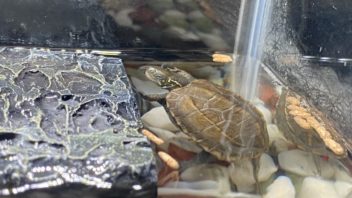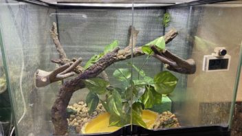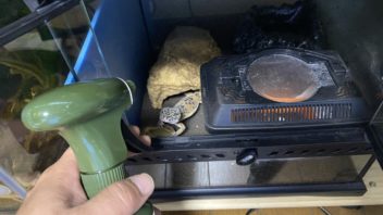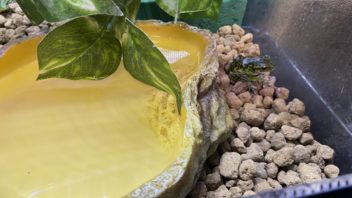 そして生き物達のお世話です。各飼育ケージに霧吹きしゅっしゅしたり、水場の水を換えたり。(´・ω・`)