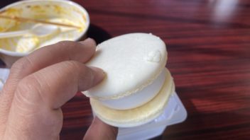 食後のデザートは白いマカロンアイスというのを食べてみました。まずまず。(´・ω・`)