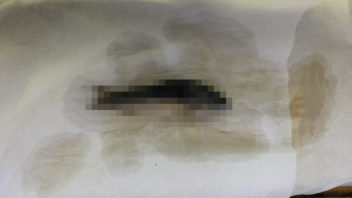 すると、赤コリドラスの赤さんが☆になっているのに気付きました・・・。結構前に皮膚病みたいになって、背鰭が融けて体も白くなって穴が開いたみたいになっていた時期があって、そのうち体は元に戻って一安心していたんですが、数日前からまた体が白くなって来ていて、昨日は目が虚ろだったので気にはなっていましたが・・・。( ノд`)