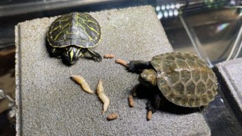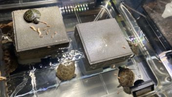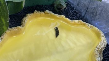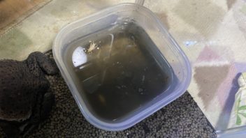 そして生き物達のお世話です。各飼育ケージの水場の水がきちゃなくなっていたので交換する事に。(´・ω・`)