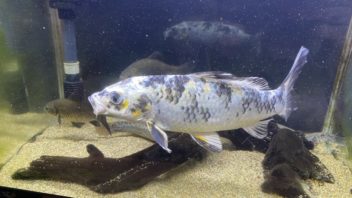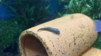ふと熱帯魚水槽を見てみると、何か分からない魚が☆になって沈んでいて、プレコが齧っていました(汗)。形と大きさからすると、ボルネオプレコのちょむすけか・・・?(;´Д`)