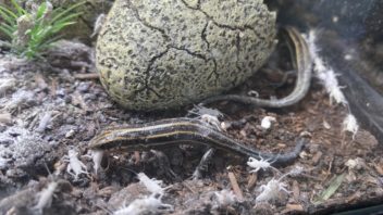 そして次はニホントカゲの幼体達とニホンカナヘビの幼体達です。100匹近いコオロギをブチ撒けました。食べ放題。(´・ω・`)