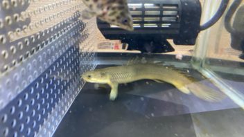 そんなこんなで帰宅すると、また肉食魚水槽でポリプテルスセネガルスがセパレーターを突破して反対側に来ていました・・・。水面をジャンプすると突破出来ると学習しているんでしょうか・・・。とりあえず網で掬って戻しておきました。(´┏┓`)