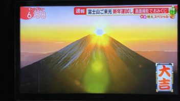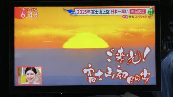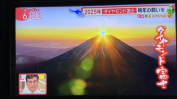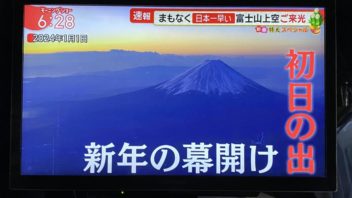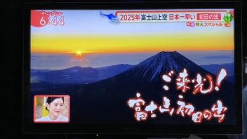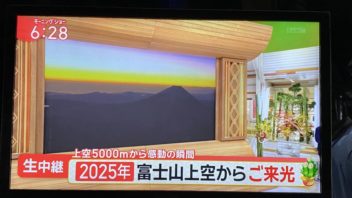 そして6時半前に起きました。毎年恒例のモーニングショーの富士山上空からのご来光中継を観ます。