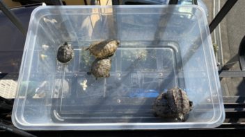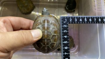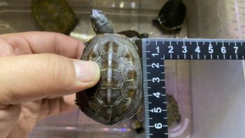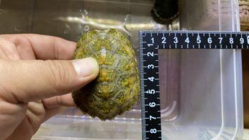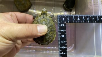 相変わらず日差しが強いので、カメ達を水槽から出して日光浴させる事にしました。ついでにカメ達の甲長を測ってみる事に。(´・ω・`)
