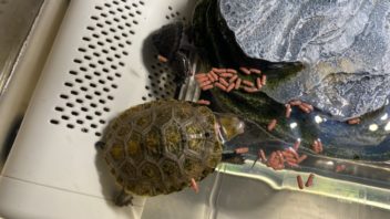 そして帰宅です。まずは各飼育ケージに霧吹きしゅっしゅしました。そしてカメ達にご飯です。