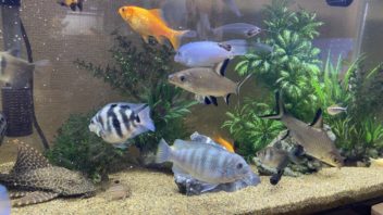 会社に行く準備をしながら熱帯魚水槽を見てみると、100匹の餌用のメダカが全滅していました・・・。一平のお腹がパンパンです。( ´_ゝ`)