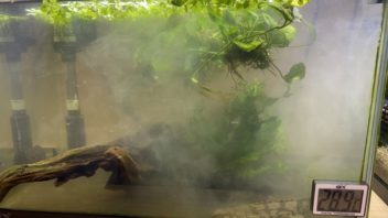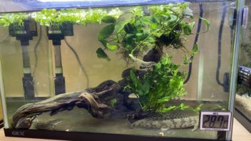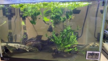 肉食魚水槽ですが、以前から水がなんだか黄色いような緑のような感じです。流木を入れているのでアクが出ているんでしょうかね・・・。(´・ω・`)