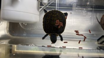 そしてカメ達にもご飯です。なんか黄緑丸が最近急激にでっかくなって来ている気がします。(´・ω・`)