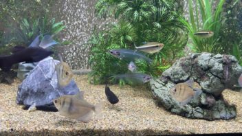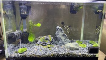朝起きてアカメ&タイガーショベルノーズキャット水槽を見てみると、300匹投入したミナミヌマエビが残り100匹もいない感じになっていました(汗)。一晩でそんなに喰うのか!?(;´Д`)