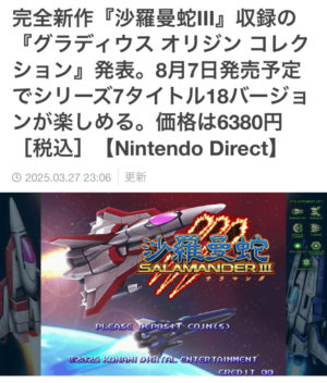 沙羅曼蛇好きとしてはこれは朗報です。買おうかな・・・。(´・ω・`)
