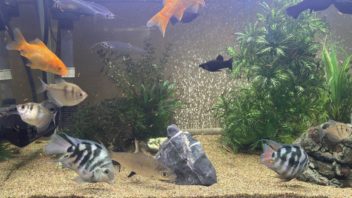 帰宅して、魚達とカメ達にご飯をあげました。