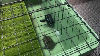 よく見ると、カメ達のプラ舟に入れている浮かべる水温計の表示が映らなくなっていました(汗)。浸水でもしたのか・・・?とりあえず電池を抜いて乾かしてみよう。(;´Д`)