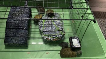 そして次はカメ達のプラ舟の水も全換水です。かなり汚れています。