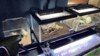 そして帰宅して生き物達のお世話です。各飼育ケージに霧吹きしゅっしゅしたり、水場の水を換えたり。