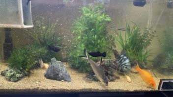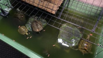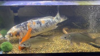 そしてカメ達と魚達にご飯です。肉食魚水槽の水が濁り気味なので、ろ過マットを交換しておきました。(´・ω・`)