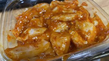 そしてお風呂に入ってから晩ご飯です。サーモンキムチも食べました。(*´∀`)