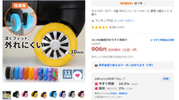それはそうと、先日買ったキャリーケースですが、ユリセさんがキャスターカバーを付けた方が良いと言うのでYahoo!ショッピングで注文しました。クーポンで半額以下で。(*´∀`)