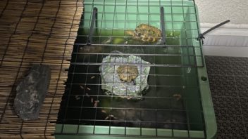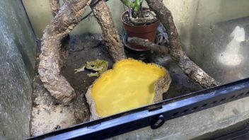 そして生き物達のお世話です。各飼育ケージに霧吹きしゅっしゅしたり、水場の水を換えたり、ガラスを拭いたり。