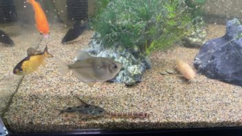 これで熱帯魚水槽にいる魚達でサイズの大きいのはブルータイガーパロット2匹のみになりました。ちょっと寂しい感じになりましたね・・・。(´・ω・`)