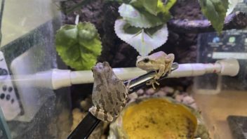 そして次はモリアオガエルのベビー達です。ばくばく食べていました。少し安定して来たかな・・・。(´・ω・`)