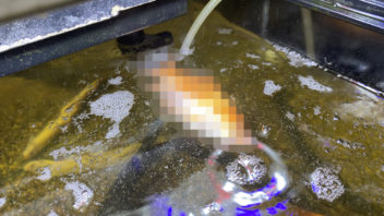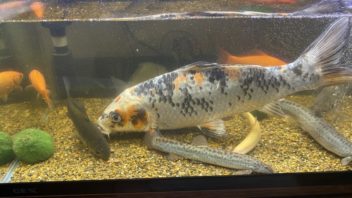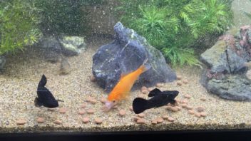 そして次は魚達にご飯をあげようとしたんですが、日本淡水魚水槽でずたぼろくんが☆になって浮いているのに気付きました・・・。全く前兆無しです・・・。餌用の小赤を買って来て育てて10cm近くにまで育っていたのに残念です・・・。飼育日数は369日でした。( ノд`)