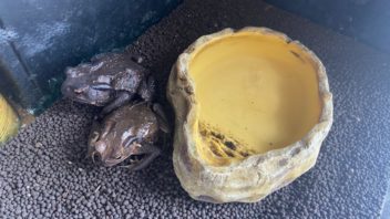 朝起きて、8時半前から生き物達のお世話です。まずは水場の水換え。(´・ω・`)
