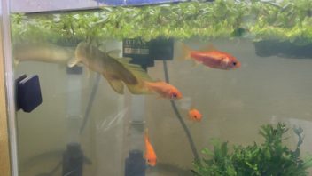 そして餌用の小赤をタイワンドジョウ水槽と肉食魚水槽に投入しました。