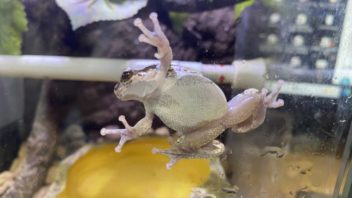 そして次はアマガエル達です。先日お迎えしたはっきりくんはまだ環境に慣れていないのか食べません・・・。(´・ω・`)