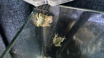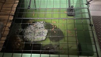 そして生き物達のお世話です。各飼育ケージに霧吹きしゅっしゅしたり、水場の水を換えたり。
