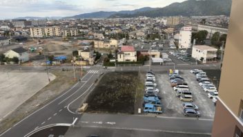 そして部屋に戻りました。改めて窓からの景色を眺めてみましたが、富士山も新幹線も見えません。( ´_ゝ`)