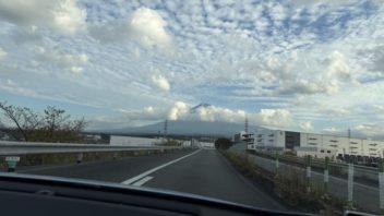 北向きに走っていたんですが、正面に富士山が見えました。雲がかなりかかっていてほとんど見えませんが。(´・ω・`)