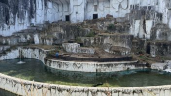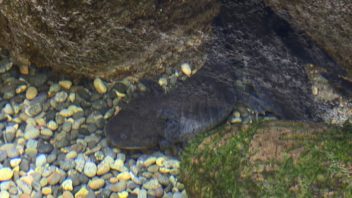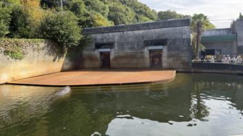 入ると正面に建物が。そして建物の前に今回の旅行ではすっかりお馴染みのオオサンショウウオがいました。(´・ω・`)