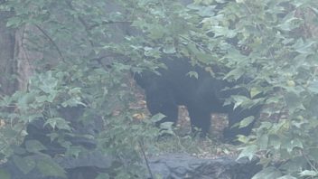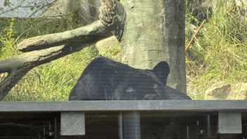 再びクマのところに行ってみました。すると、遠くにツキノワグマの姿が。