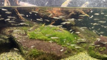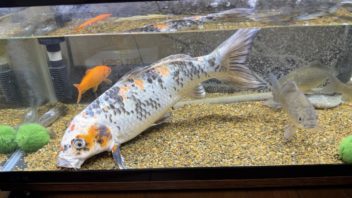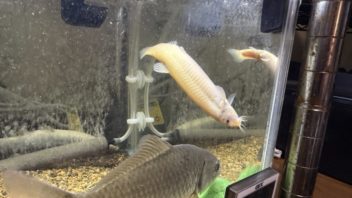 そんな中、ふと日本淡水魚水槽を見ると、メイベルがひっくり返って沈んでいました(汗)。藤宮もひっくり返ってぷかぷか泳いでいます(汗)。