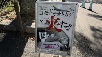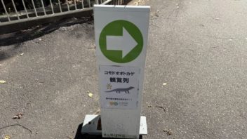 外に出ると、コモドオオトカゲの展示場への案内看板がありました。見に行こう。(*´∀`)