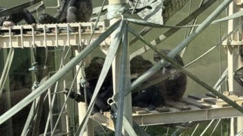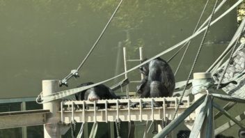 ゴリラの横にはチンパンジーがいました。意外とチンパンジーってデカいな。(;´Д`)