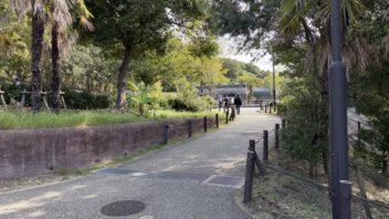 建物の下に行くと、上から見ていた場所を地上から見られました。