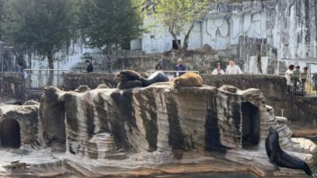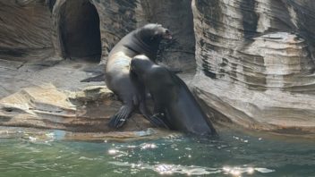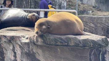 ラーテルの向かいには海洋ゾーンが。まだアジアゾーンは全部見ていませんが、海洋ゾーンに行ってみました。もうゾーンとか関係無く近い順番に見て行く事にしました。小学生がめっちゃいる。(;´Д`)