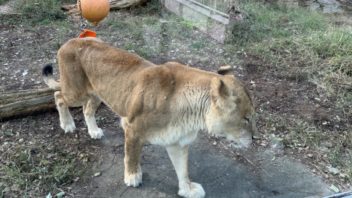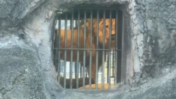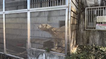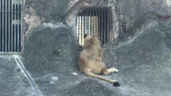 更に歩いて行くと、ライオン舎がありました。メスのライオンがいました。