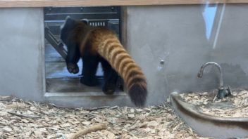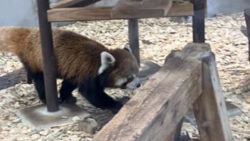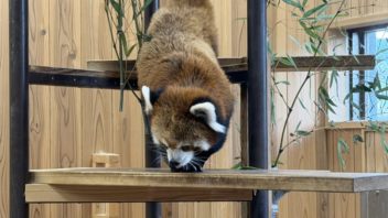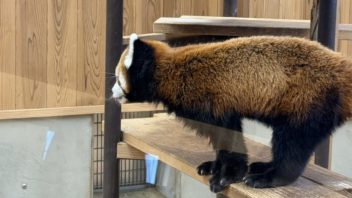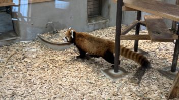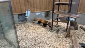 レッサーパンダは屋外と屋内を行ったり来たりしているみたいです。屋内には見当たらなかったので今は屋外にいるんでしょう。