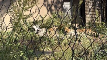 ライオン舎の隣にレッサーパンダ舎がありました。レッサーパンダも昨日見ましたね。(´┏┓`)