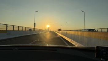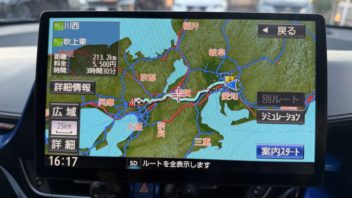 お腹も膨れたところで、いよいよ帰る事にしました。家までをナビにセットすると、213.2km、3時間30分と出ました(死)。16時18分、出発です。