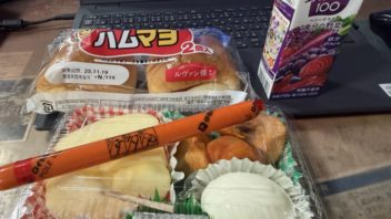そして6時15分に家を出て7時前に到着です。例によって家から持って来た朝ご飯をデスクでもぐもぐ。(´・ω・`)