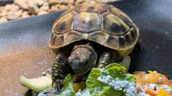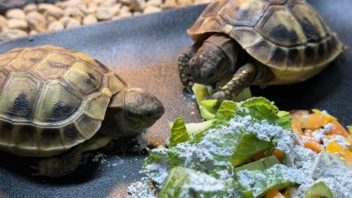 そして昼寝です。夜は晩ご飯を食べてから、ヒガシヘルマンリクガメ達に追加でフードを与えてみました。昨日ブリーダーさんに貰ったフードを与えたんですが、これはヘル丸もマン丸もバクバク食べていました。
