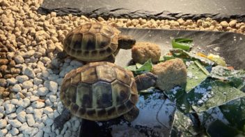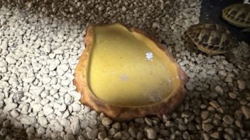 そんなこんなで帰宅です。ヒガシヘルマンリクガメ達の飼育ケージの様子を見てみると、餌はほとんど食べ切っていました。意外と量を食べるな・・・。量をセーブした方が良いのか・・・?(´・ω・`)
