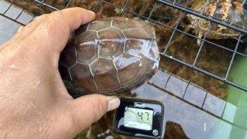 とりあえずベランダで冬眠中のカメ達の様子の確認です。白丸も小丸もちゃんと息をしていました。(´・ω・`)
