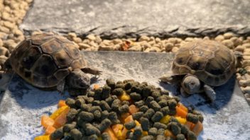 そしてリクガメ達にご飯ですが、今日はいつものフードではなくマルベリックドライを与えてみました。とりあえずは食べています。(´・ω・`)